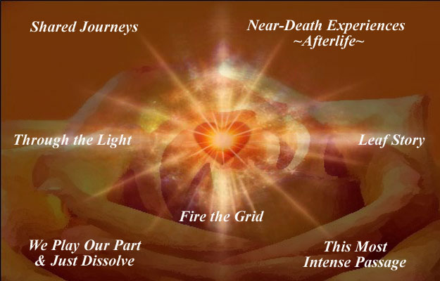 The next impression of his abstraction was experienced by another individual, a few weeks later in group formation, who relayed the experience as follows. This experience simultaneously included mental, emotional, and physical impressions, as if it were happening to them in present time. When you move out of your body you're in this gel. It's kind of like Jell-O, it's in blobs, but of an even thicker consistency, kind of like tapioca, but without the little bits in it. This is like one blob, then there are blobs here, and here, and here. It's like the material when a volcano blurps ~ but more like Jell-O. The blobs are individual yet are attached to one another. You're in it and it's thick and gooey and you can hardly move at first, everything's in slow motion. You can't move, and it's kinda stuck and it's sticky, but then something happens and it gets warmer. And after it gets warmer, it begins to loosen and become not so thick, just like Jell-O would it becomes thinner and thinner, until it's almost liquid. Then you just emerge from out of it. No longer are you contained in these blobs. Then you go into the astral from that blobby, liquefying process. The astral consists of rosy pink and gold, there's lots of light, lots of swirling energy and colors ... but mainly, rose and gold. And there're these little sparkle-like things of a lot of energy, with a little light, and then it goes to white. You find that you begin to appear places. At first, you don't know what's happened ~ you don't know that you've thought of something, somewhere or someone. You don't realize you've appeared because of your thinking. Then, you recognize that you can focus and you can cause yourself to appear somewhere. If you focus on a place or a person, or whatever, it's what you're focused on that determines where you'll appear. And when you do that, as you go from that one point to the next, there's this sucking noise, this suction. "Oh, I'll focus here." You can be anywhere, all you need to do is just focus, just think it, and you're there. Just like that. It's as if you're physically there, but now it's your astral body ... and when you go to that place there's a suction, and when you leave, again there's a sucking noise. You can pop in and out ... and at first you were defocused, and you didn't know. And then you learned how to work in it. And once you learned to work in it, it was kind of fun. You gain facility, you've really had facility already, but now you're even freer and you can do it quicker, and you can gain more facility not having your physical body. When you're popping around and doing those things, then comes, "Okay, guess what? You have work to do!" And then you appear, you pop into this light, indigo space. It's not a cold indigo, it's warm and there's a lot of energy. There are silvery, scintillating lights in this indigo, kind of like when you close your eyes and you look at indigo but you also see energy in the form of vitality globules. There's a consciousness there, a life. It feels really expansive, like it would just go on, as if there were no borders. But there is a border. It has a beginning and an end to this process. The next thing is that you pop out of the indigo. When you pop out, all of a sudden you see this world, this perfect nature scene ... majestic mountains, a beautiful blue lake, green trees along with rich amber Aspen fall-colored leaves, everything is just perfect. Then you pop out of this into another place, a beautiful nature scene ... the desert, with southwestern colored mesas, blue sky. There was yet another spring-like place with blossoms, a crystal clear stream, and green trees. These were Eden-like places. These scenes were picture perfect. And then when I popped into one, all of a sudden it went "Oh, this isn't real! This is an illusion!" The pictures began to blend together, they were unreal. And when it did that, instead of it being like a picture you take a photograph of, all of a sudden it began to dissolve. And the colors began to be one, until it all flowed into no picture. Once you recognized it was all an illusion that was what happened ~ that was the process. No pictures. No nothing. Then there is a gold and indigo space that has no thoughtforms or pictures. It feels like the mental plane. It's alive like the other indigo was, but this one has a different vibration in it. That one had silver, and this one has gold energy. This indigo space at first is very expansive but like a lens aperture to a camera, it begins closing down in a spiraling motion, focusing into an indigo point. The point instantaniously becomes a white-gold wormhole like tunnel to a white-golden luminescent plane which ultimately transforms to a clear, translucent space. There's something about this that's hard to convey, there's no adequate language to describe the experience now. There's nothing, yet there's everything! There's so much energy yet there's no color, no feeling, no astral. All the previous experiences had components of feelings, sensitivity and sentience. This one has a sentiency but not the feeling kind of sentiency like the others. It's translucent, clear ... the nothing. The work is to gain facility in these realms. It's a solitary journey.