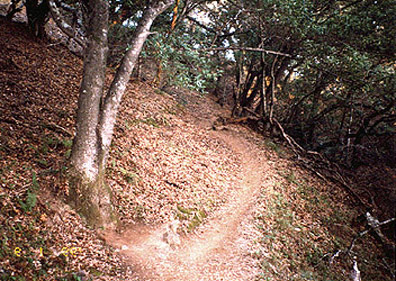 As the Sun had gone low and to return on the same path would be darker, Promethea suggested, to scale the mountain downwards, taking another of the trails than the one they had climbed. Onward they went, walking in the dark across the ridge of the mountain, taking steps carefully in the limited light in order not to slip and fall. Soon after starting to descend Herculina pointed out the path was getting obscure, and so the two turned around to retrace their steps. But their subsequent attempt to find the path got them even more off course. Realizing the darkness was obscuring the trail, they couldn't see where to go. Promethea suggested the way down would be to walk along the nearby ravine, and since it appeared to go in the right direction this seemed reasonable for some distance as they traversed the empty stream bed.