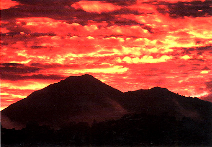 It was the eve of the last Christmas Eve of the millennium late in the afternoon when two hikers, Herculina and Promethea, set out for a walk in the forest. On this the day after the winter solstice, the Sun shone a warm blanket of radiant light on its descent through the western clouds. Sunset had begun with the peachiest of subtle hues as the two pilgrims strolled along the path up the mountain then it grew more and more bright into the deepest of pinks and oranges as it drew lower under the horizon to penetrate the thin, shiny bank of clouds and blue sky. The hikers stopped along the switchback trail to bask in the glory of the sun's swansong, drinking in the firmament of the holy sky in solstice glow.