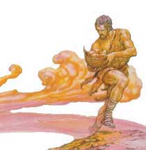 The Symbols Eurystheus, having watched Hercules achieve mental control and then ride the bull of desire over into the Temple of the Soul, now sets him the task of fetching the golden apples from the garden of the Hesperides. The apple has long figured in mythology and in symbology. In the garden of Eden, as we know, the serpent gave the apple to Eve; and with the giving of that apple, and with its acceptance came the knowledge of good and of evil. This is a symbolic method of telling us the story of the appearance of mind, and of how it began to function in that early creature, which was neither animal nor strictly human. With the coming of mind came also the knowledge of duality, of the pull of the pairs of opposites, of the nature of the soul, which is good, and of the nature of the form, which is evil if it holds the soul and hinders it from full expression. It is not evil per se. It is to be noted that in the garden of Eden one single apple was given to the human being, the symbol of separateness, isolation. Hercules had to hunt for the golden apples in another garden, and in the garden of the Hesperides the apples were the symbol of plurality, of synthesis, and of the many, nourished by the one tree of Life. Hercules was told only three facts: that there was a garden containing a tree whereon grew the golden apples; that the tree was guarded by the hundred-headed serpent; that, when he found it, he would find there these three beautiful maidens. But in what direction lay the garden, and how to find it, he was not told. This time he was not confined to the wild lands, up and down which the man-eating mares ravaged; nor was he confined to the little island of Crete. The whole planet had to be searched, and he went up and down from north to south and from east to west, until at last he met Nereus, who was skilled in all wisdom and in all forms of speech. He is called in some of the classics, "the ancient of the sea". He was not only wise, but very elusive, assuming many forms, and refused ever to give to Hercules a direct answer. Finally, he hinted as to the direction in which the apples should be sought, sending him on his way alone and somewhat discouraged, with only a vague idea as to what he would have to do and where he would have to go. All he knew was that he had to turn south; a symbol of going back into the world, the opposite pole of spirit. He had no sooner done so than he met the serpent with whom he had to wrestle. [Known in mythology also as the giant, Antaeus, the son of Poseidon, god of waters, and Gea, the earth. Hence when in touch with the earth, his mother, he was invincible.] In his search for the golden apples on the physical plane, Hercules had to conquer, as do all disciples, glamor and illusion; for in the carrying forward of spiritual aspiration, the disciple is very apt to be taken in by astralism and lower psychism in one form or another. As Hercules wrestled with the serpent, he found he could not overcome it until he discovered that it was invincible only so long as it was in contact with the earth. just as soon as Hercules lifted the serpent (Antaeus) high into the air, it became utterly weak and unable to defeat him. Gemini is an air sign, a mutable or common sign. Glamour is ever changing, ever taking one form or another. It concerns appearance and not reality, and the earth stands for appearances. Having vanquished the serpent that stood in his way, Hercules passed on in his search. His next encounter was with glamor in another form. Busiris was a son of Poseidon, the god of the waters, but his mother was a mere mortal. He claimed to be a great teacher. He was fluent in speech and captivating in what he said. He made great claims for himself, leading Hercules to believe that he could show him the way, that he could lead him out into the light, and that he was the custodian of truth. Hercules was completely deceived. Little by little he fell under the power and spell of Busiris; little by little he yielded up his will and his mind and accepted him as his teacher and guide. Finally, when Busiris had Hercules entirely under his control, he bound him to the altar of sacrifice and forced him to forget Nereus. The myth tells that Hercules eventually freed himself and resumed his search, binding Busiris to the altar whereon he himself had lain. Again we find discouragement, delay, failure and deceit characterizing this part of the test. Still searching up and down, he found Prometheus bound to a rock with the vultures tearing at his liver. The sight of such suffering was more than Hercules could bear and he turned aside from his search to release Prometheus, thus putting him in a position to drive away the vultures. We come now to the crucial point of the Labour and to that which constituted the real test. Hercules finds Atlas bearing the load of the world on his shoulders, and staggering under the weight of the task he had undertaken. Hercules is so overcome by the stupendous enterprise of Atlas, and so concerned over his sufferings as he seeks to carry the weight of the world, that he gives up his search for the golden apples. He forgets what he himself has set out to do and, in pity, takes the load off the shoulders of Atlas and bears it himself. Then we are told in the wonderful consummation of the story, that Atlas, freed from his burden, goes to the garden of the Hesperides, plucks the golden apples without any let or hindrance from the hundred-headed serpent, with the enthusiastic help of the three beautiful maidens, and brings the apples to Hercules, who now also stands free, in spite of all the obstacles and hindrances, the deviations due to glamor and illusion. Despite failures and the length of time it has taken him to arrive at wisdom, Hercules does obtain the golden apples. Note that the opposite, or consummating sign, of Gemini is that of Sagittarius, the Archer, who shoots straight and rides unhindered to the goal. no deviations, no failure! Th