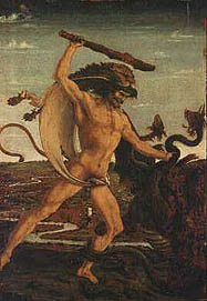 by Alice A. Bailey The great Presiding One, enrobed in radiant calm, said but a single word. The Teacher heard the golden command, and summoned Hercules, the son of God who was also the son of man. "The light now shines on Gate the eighth," the Teacher said. "In ancient Argos a drought occurred. Amymone besought the aid of Neptune. He bade her strike a rock, and when she did, outgushed three crystal streams; but soon a hydra made his dwelling there. "Beside the River Amymone, the festering swamp of Lerna stands. Within this noisome bog the monstrous hydra lies, a plague upon the countryside. Nine heads this creature has, and one of them is immortal. Prepare to battle with this loathsome beast. Think not that common means will serve; destroy one head, two grow apace." Expectantly Hercules waited. "One word of counsel only I may give," the Teacher said. "We rise by kneeling; we conquer by surrendering; we gain by giving up. Go forth, O son of God and son of man, and conquer." Through Gate the eighth, then, Hercules passed. The stagnant swamp of Lerna was a blot dismaying all who came within its confines. Its stench polluted all the atmosphere within a space of seven miles. When Hercules approached, he had to pause, for the smell alone well-nigh overcame him. The oozing quicksands were a hazard, and more than once Hercules quickly withdrew his foot lest he be sucked downward by the yielding earth. At length he found the lair where dwelt the monstrous beast. Within a cavern of perpetual night, the hydra lay concealed. By day and night Hercules haunted the treacherous fen, awaiting a propitious time when the beast would sally forth. In vain he watched. The monster stayed within its fetid den. Resorting to a stratagem, Hercules dipped his arrows in burning pitch, and rained them straight into the yawning cavern where dwelt the hideous beast. A stirring and commotion there upon ensued. The hydra, its nine angry heads breathing flame, emerged. Its scaly tail lashed furiously the water and the mud, bespattering Hercules. Three fathoms high the monster stood, a thing of ugliness that looked as if it had been made of all the foulest thoughts conceived since time began. The hydra sprang at Hercules and sought to coil about his feet. He stepped aside and dealt it such a crushing blow that one of its heads was immediately dissevered. No sooner had this horrid head fallen into the bog than two grew in its place. Again and again Hercules attacked the raging monster, but it grew stronger, not weaker, with each assault. Then Hercules remembered that his Teacher had said, "we rise by kneeling." Casting aside his club, Hercules knelt, grasped the hydra with his bare hands, and raised it aloft. Suspended in mid-air, its strength diminished. On his knees, then, he held the hydra high above him, that purifying air and light might have their due effect. The monster, strong in darkness and in sloughy mud, soon lost its power when the rays of the sun and the touch of the wind fell on it. Convulsively it strove, a shudder passing through its loathsome frame. Fainter and fainter grew its struggles till the victory was won. The nine heads drooped, then with gasping mouths and glazing eyes fell limply forward. But only when they lifeless lay did Hercules perceive the mystic head that was immortal. Then Hercules cut off the hydra's one immortal head and buried it, still fiercely hissing, beneath a rock. Returning, Hercules stood before his Teacher. "The victory is won", the Teacher said. "The Light that shines at Gate the eighth is now blended with your own". - Francis Merchant