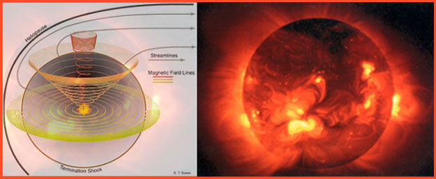 Steve Suess (NASA/MSFC) prepared this figure, which shows the Sun's spiraling magnetic fields.