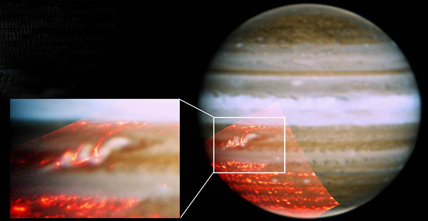 Jupiter is eye-catching in the south about 30 minutes after sunset. It is brilliant enough to be seen before the sky darkens. How early can you spot the planet? Use landmarks at nightfall to locate the planet at dusk or earlier the following day. Our gaseous giant, traveling further from the Earth, is dimming and shrinking in size. However, at magnitude -2.5, it remains the brightest point of light in the night sky until it sets around 1:15am in the beginning of Sagittarius and at midnight by its end. Only the Sun, Moon and Venus are brighter than Jupiter. Jupiter is now moving easterly toward its companion planet, Uranus. They will be in exact conjunction January 4, 2011. Early January Finder Chart Uranus at magnitude 5.8 can now be seen with binoculars and without an optical aid in a dark sky. Mark Your Calendar December 10-16 Jupiter and the waxing Moon are a visual treat. Stay tuned for a Moon Dance link with a map and meditative reflections. December 13, Monday evening, Jupiter, the First Quarter Moon and Uranus are in close proximity at the circlet of Pisces. 12/13 8pm Map December 16, Thursday, Jupiter reaches quadrature. Telescopic Jupiter Viewing Jupiter with a telescope promises to be an adventure. Any size telescope will reveal Jupiter's missing South Equatorial Belt or perhaps the "SEB Revival" ... the return of the missing stripe! In addition, seeing nearby Uranus with a telescope or binoculars is a special 2-for-one planetary treat! Both planets, still relatively close to Earth, also lend themselves to better than normal observations. The four Galilean Moons, the largest and brightest satellites of Jupiter can be seen in a dark country sky with binoculars. They appear starlike on either side of the planet. With a telescope you just might see one of these cast a shadow on the Jovian cloud tops or disappear into the planet's shadow and then reappear in full brightness. Jupiter’s