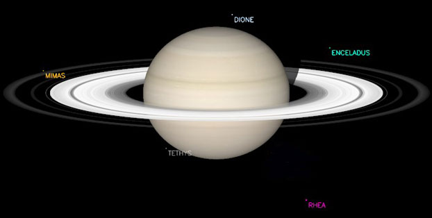 Saturn rises in the morning sky at 2:45am in the beginning of Sagittarius and at 1:30am by its end. By the time dawn's early light appears, the planet lies almost half way to the zenith in the southeastern sky. As the days unfold, watch Saturn climb higher before dawn. The Lord of the Rings lies in the constellation of Virgo the Virgin above Virgo's brightest star, Spica. Our eyes see Spica's blue-white light (magnitude 1.0) and Saturn's yellowish glow (magnitude 0.8) shining at the same level brightness. A brighter golden star, Arcturus, lies to the north (left) of Saturn and a much, much brighter Venus lies below to the east. Look for the waning Crescent Moon near Saturn December 1, Wednesday. 12/1 5am Map and to the right of Venus December 2, Thursday. 12/2 6am Map Click Moon Dances for an additional map with meditative reflections.