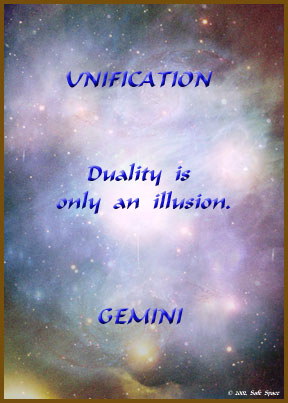 The Light of Gemini: The Light of Interplay This is a line of light beams, revealing that which opposes or the basic duality of manifestation, the relationship of spirit and of form. It is the conscious light of that relationship.