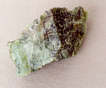 Regional metamorphic rock. Serpentine is a very common secondary mineral, resulting from a hot water alteration of magnesium silicates (mostly peridotite), present in magma. Serpentine is found in the US, Canada, China, England, Russia, Italy and India. Colors can vary from different shades of green to black, red, white, yellow and brown. The serpentine group contains several polytypes. Antigroite, which occurs in tough, compact, often pleated masses in shades of dark green (often schistose in formation as well). Chrysotile, which is almost always in fibrous yellowish-white or green aggregates. And Lizardite, which is in minute scales or compact whitish aggregates. Serpentine is actually the name for this mineral group and Serpentinite is actually the name for the rock group regardless of the type of dominant serpentine mineral. In other words the serpentine minerals are the major constitutes of the rock serpentinite. The name serpentine may come from the Latin word serpens, for "serpent." Some feel that the name "serpentine" is derived from the ancient belief that it cured a serpent's bite or because it resembled the dark green mottled variety of a serpent's skin. The California coastal ranges are essentially made up of large massive serpentine formations. This is why I chose this mineral as the first in the series, as I live in San Francisco and am surrounded by and profoundly affected by it. The Bay Area produced a relatively soft, light green or yellowish-green variety of serpentinite (principally antigroite), with a micaceous cleavage, a pearly luster and a greasy feel. This is the variety we will be concerned with here. These formations are usually massive and cryptocrystalline in appearance and are found in other parts of North America and Italy as well.
